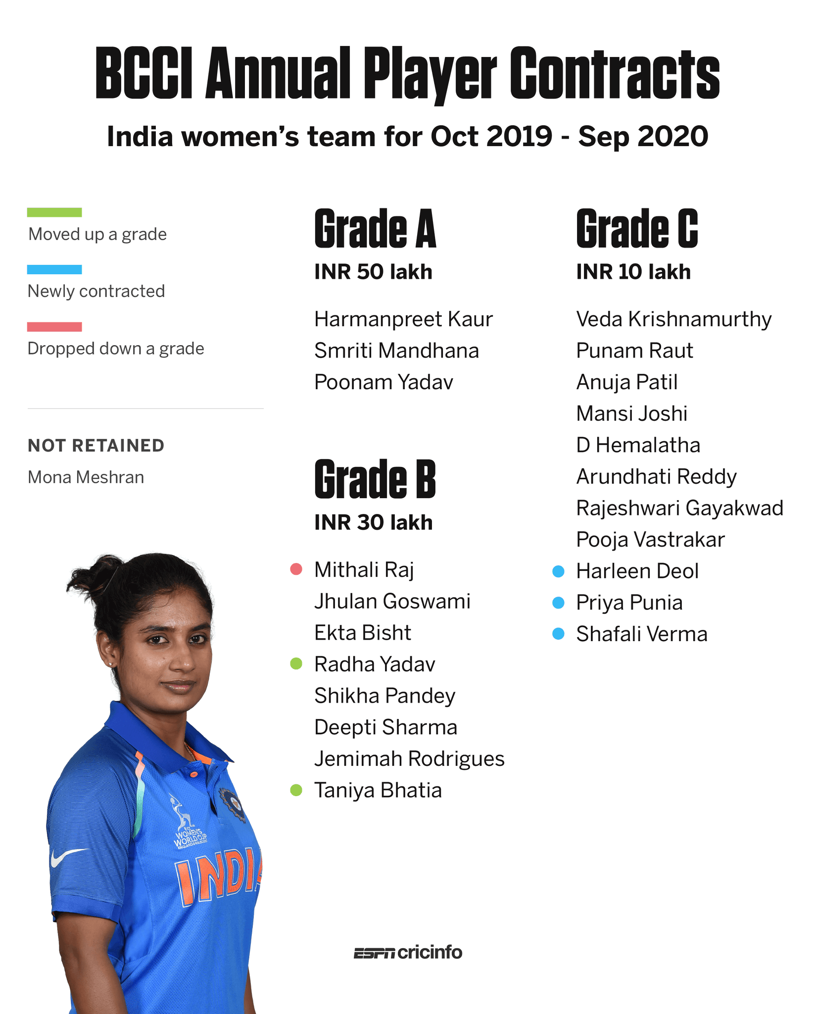 Espncricinfo No Twitter A Grade Drop For Mithali Raj While 15 Year Old Shafali Verma Is Among Those Newly Contracted Https T Co B9knw24hvg Https T Co Vyyr5fswtg